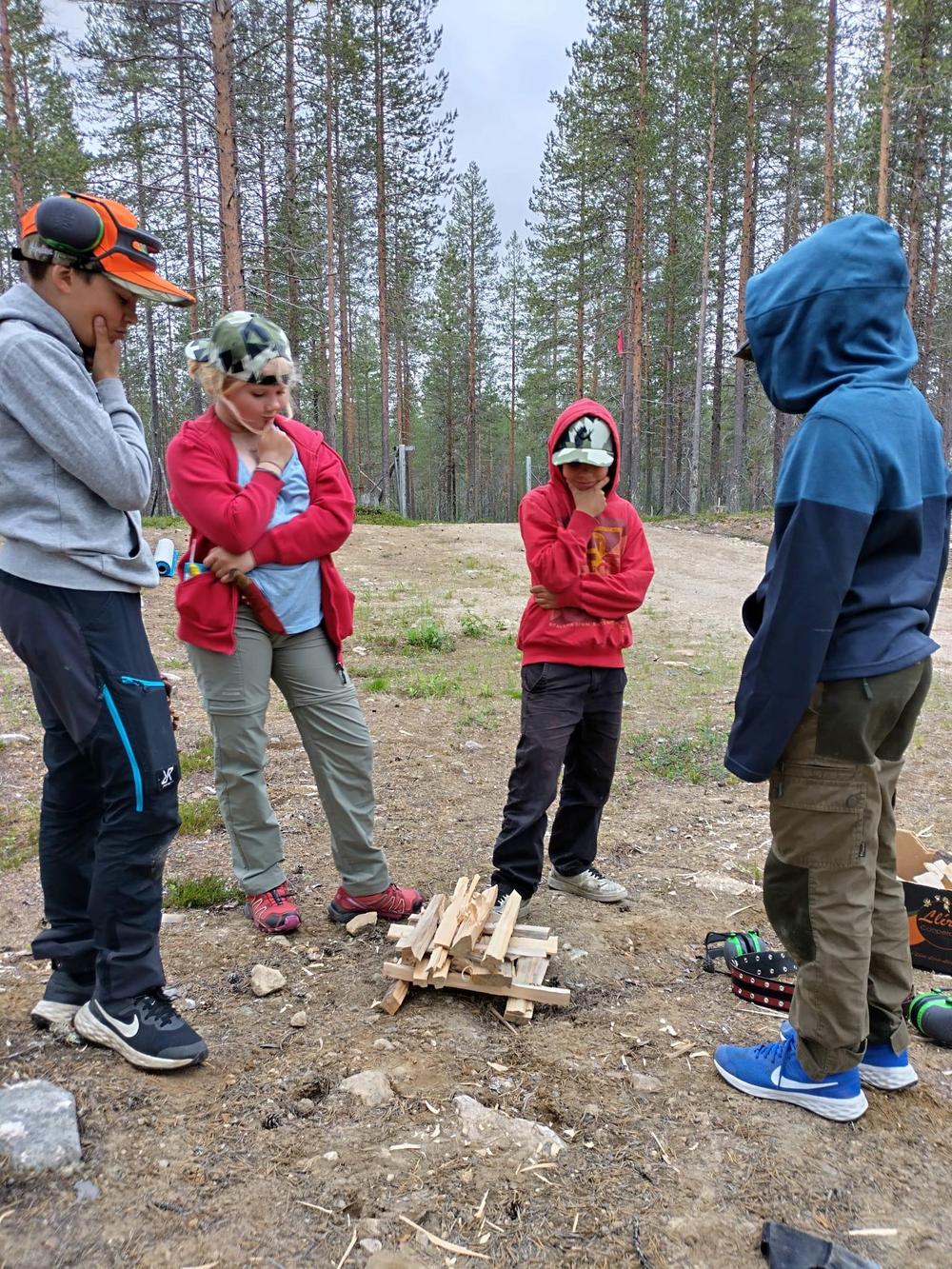 Kolmosrastilla leiriläiset ryhmänvetäjiensä johdolla pääsivät testaamaan tietojaan ja taitojaan jäljentunnistuksen ja erätietovisan parissa. Sitten opeteltiin puukonkäyttöä ja kiehisten vuolemista, kun tehtävänä oli rakentaa nuotio, tulitikku vain jätettiin raapaisematta voimassa olevan metsäpalovaroituksen takia. Rastilla myös kisailtiin tikanheiton ja hernepussinheiton ryhmänmestaruudesta tosissaan, mutta ei totisina. Rastien välissä syötiin hyvin, joten nälkä ei päässyt missään vaiheessa yllättämään ja tunnelma leirillä säilyi leppoisana. Keli myös oli varsin suosiollinen koko päivän, ei liian kuuma ja pieni tuulenvire piti sääsket ja muut öttiäiset suurimmaksi osaksi poissa, myös vesisateelta vältyttiin.