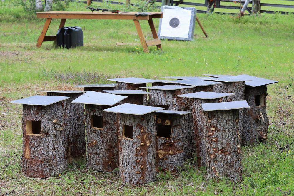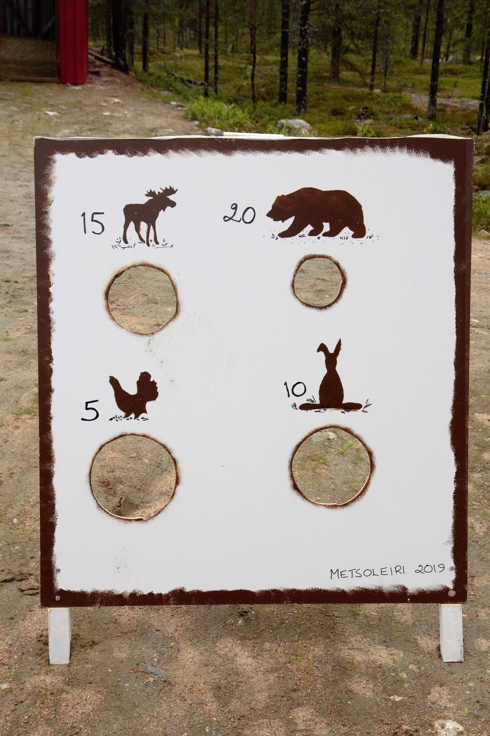 Klo 11 porukka jakaantui viiteen pienryhmään (Sudet, Ketut, Karhut, Ahmat ja Ilvekset), joissa päivän aikana kierrettiin viisi eri rastia. Rasti 1 oli ammuntarasti, jossa halutessaan jokainen sai ohjatusti kokeilla ampumista pienoiskiväärillä, .308-kiväärillä ja haulikolla. Kaikki aseet olivat SAKO:n juniorimitoitettuja aseita. Sen verran hyvin istuivat aseet leiriläisten käsiin, että kivääritauluun tuli paljon kymppejä ja kiekot poksahtelivat rikki tasaiseen tahtiin. Rastilla paitsi ammuttiin käytiin myös vielä kattavammin läpi kivääri- ja haulikkoammunnan perusteita, testattiin hallitsevaa silmää ja tankattiin turvallisuusasioita. Omaa ammuntavuoroa odotellessa sai ottaa myös pienet kisat hernepussin heitossa.