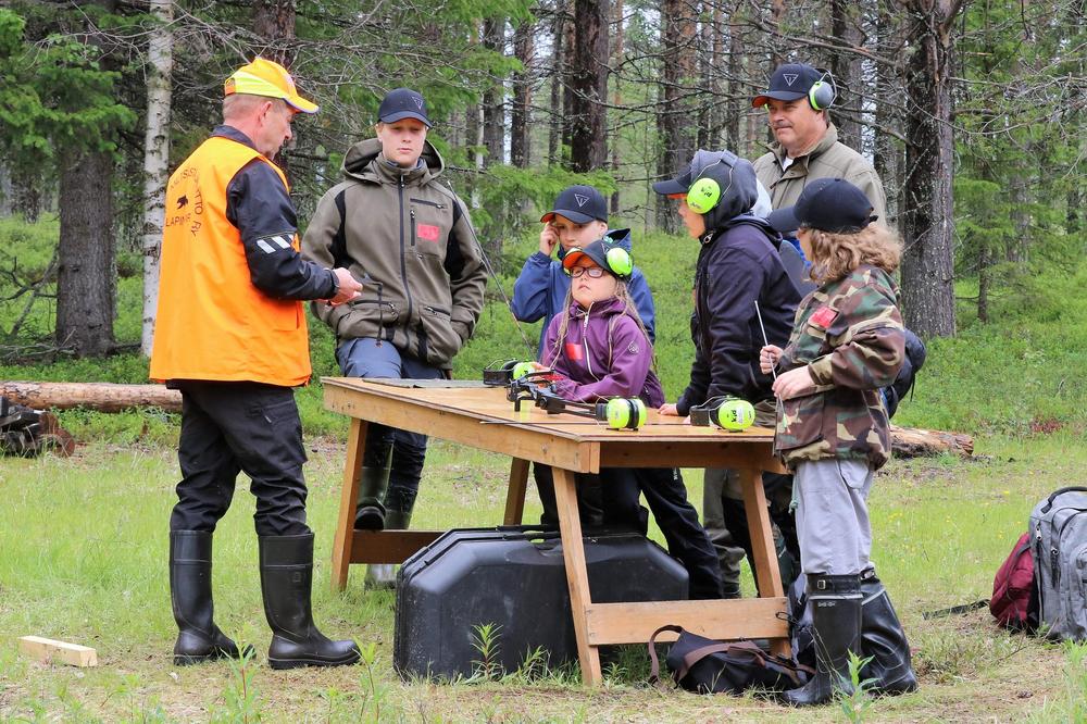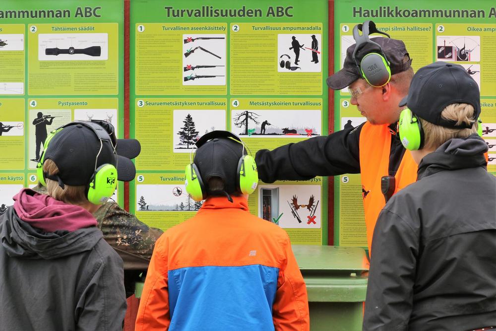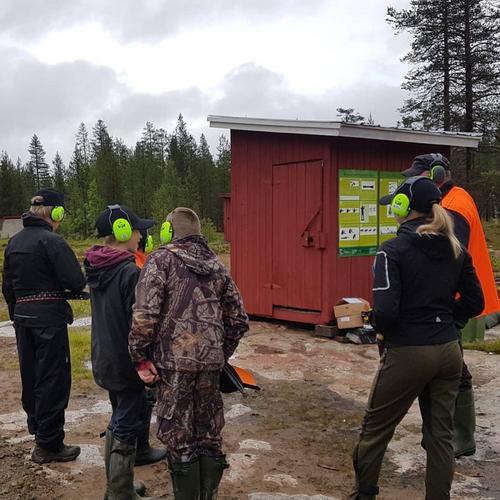 Ensimmäisenä Huotarivaaran ampumaradalla käytiin Suomen Metsästäjäliiton Lapin piirin Sami Ämmälän ja SAKO:n Jari Länkelän johdolla koko porukalle läpi muutamia perusasiota ampumisesta ja turvallisuudesta ampumaradalla ja muutenkin aseita käsitellessä.