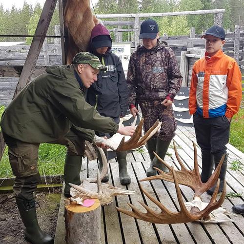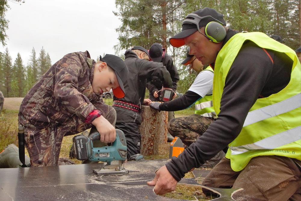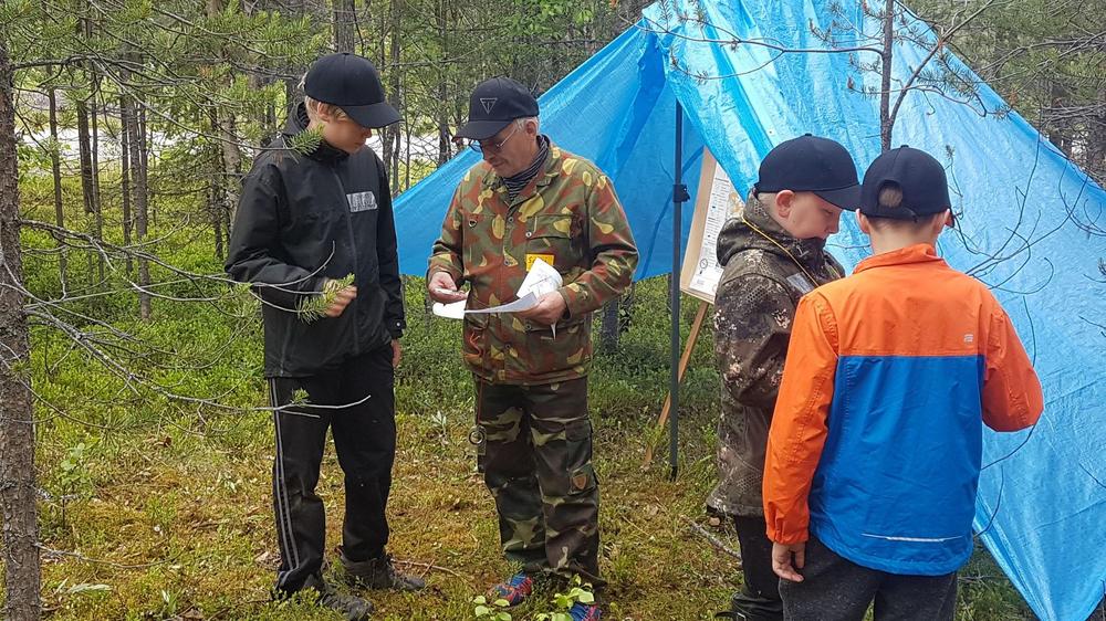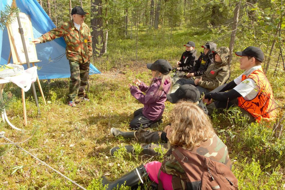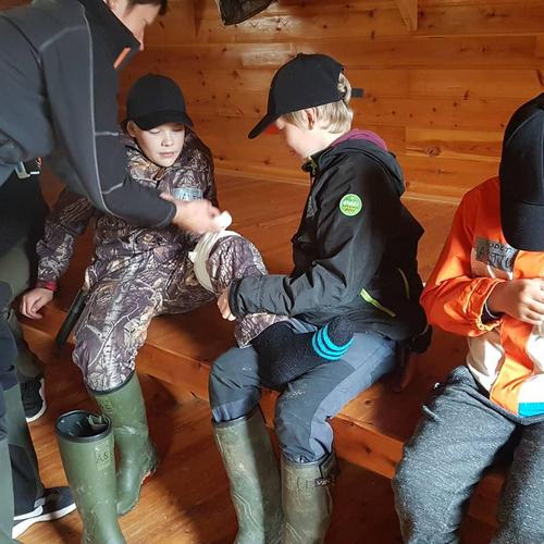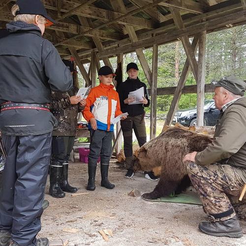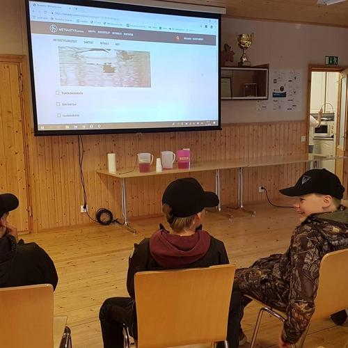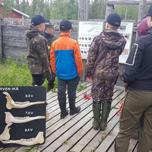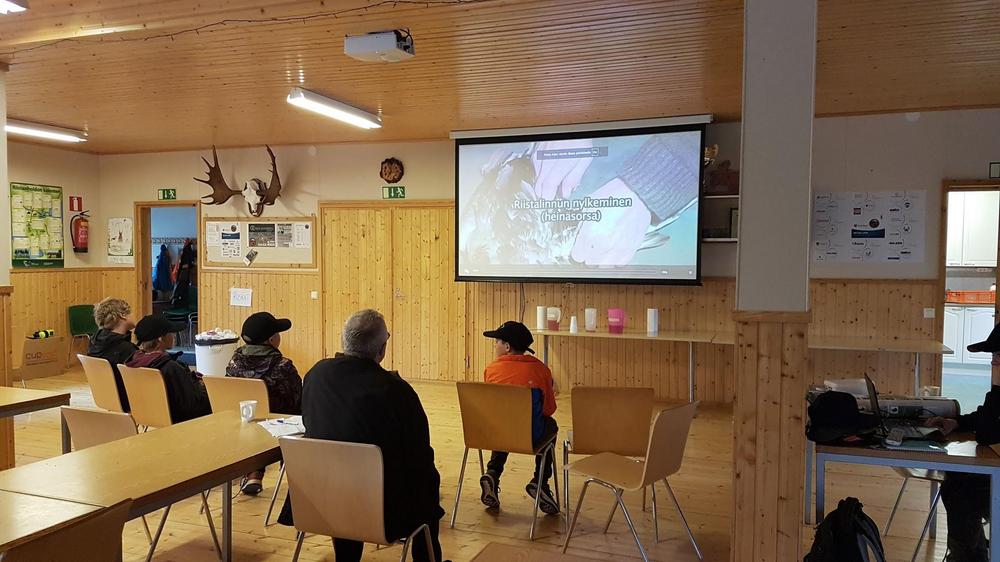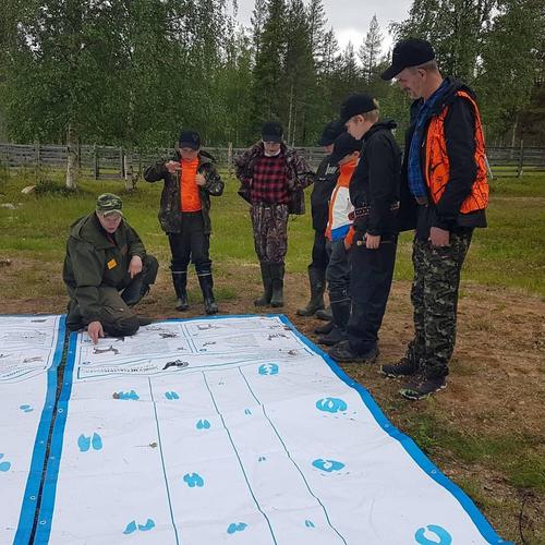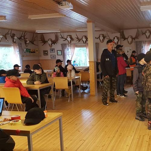 Rastilla 5 Jarmo Taavettilan johdolla harjoiteltiin lajitunnistusta riistavisojen avulla ja perehdyttiin saaliinkäsittelyyn videoiden avulla. Leiriläisiä kehotettiin tutustumaan mm. riistainfo.fi -sivustoon, josta löytyy paljon materiaalia aloittelevalle ja miksei jo kokeneellekin metsästäjälle.