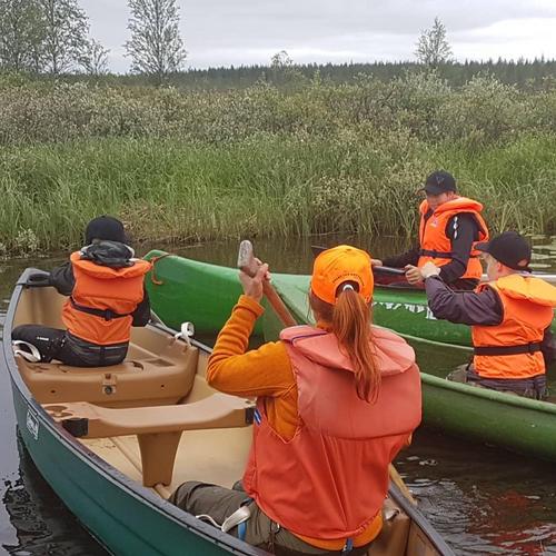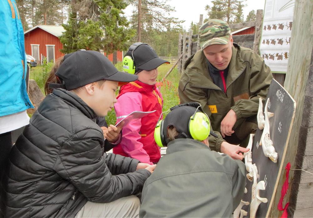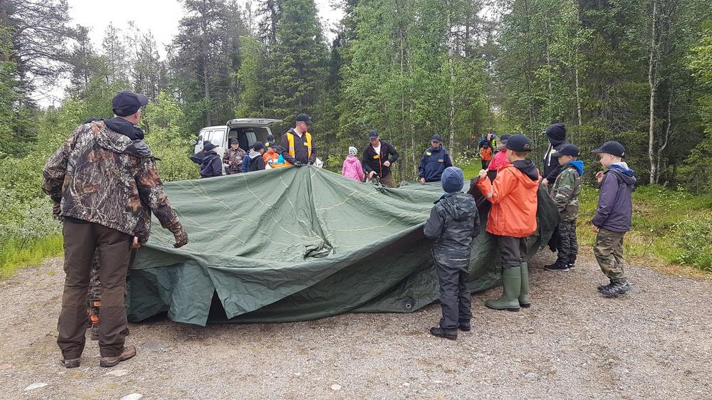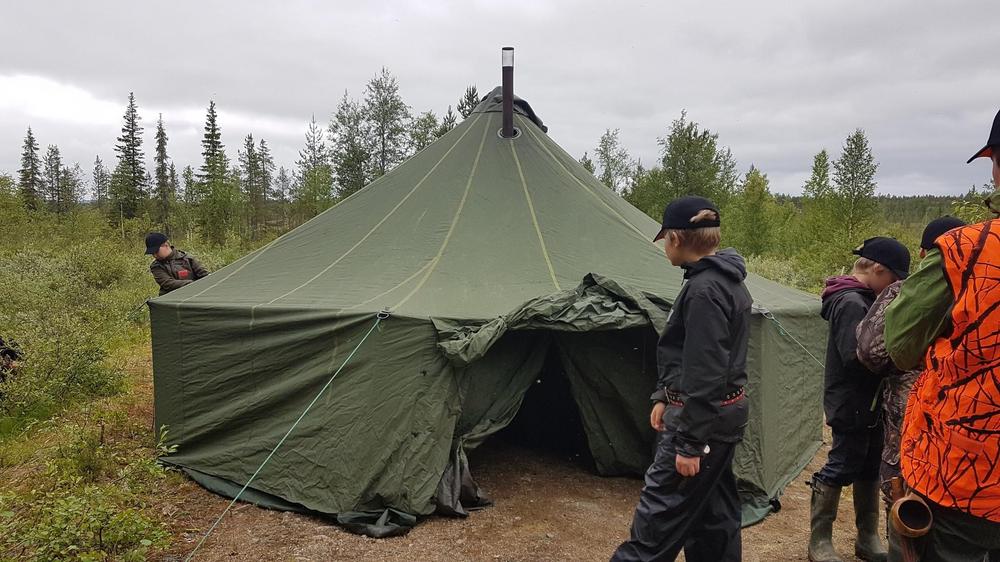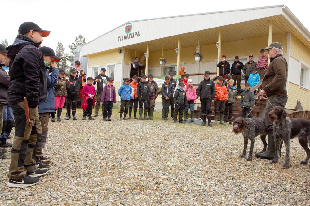 Leiri alkoi Tievatuvalla torstaiaamuna klo 10. Onneksi suurin osa leiriläisistä tuli paikalle jo etuajassa, niin ilmoittautumiset ja pienryhmiin jakautuminen saatiin jouhevasti alta pois. Jokaiselle leiriläiselle jaettiin jo leirin alussa kuulosuojaimet, Tikka-lippis ja Metsästäjäliiton t-paita. Alkuseremonioiden ja esittäytymisten jälkeen alettiin tekemään lähtöä Huotarivaaran ampumaradalle ja porokämpälle, missä odottivat pienryhmissä kierrettävät rastit.