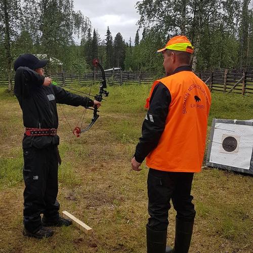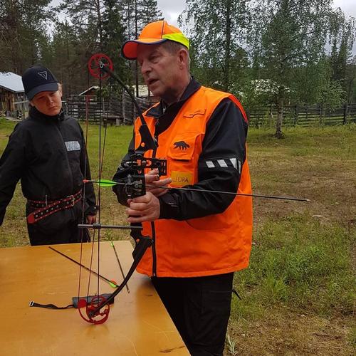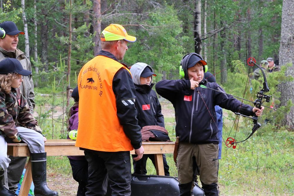 Rasti 2 oli jousiammunta. Rastilla Juha Haapamäki Suomen Metsästäjäliiton Lapin piiristä opasti pienryhmiä taljajousen saloihin. Käytössä oli juniorijousi, joten aivan pienimmätkin leiriläiset onnistuivat ampumaan todella laadukkaita laukauksia. Moni innostui niin kovasti, että Juhalta kyseltiin useampaan otteeseen, paljonko jousipaketti maksaa ja mistä niitä saa hankittua.