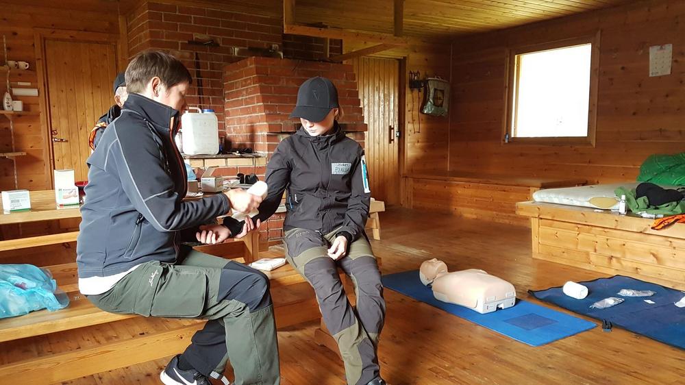 Rasti 4 oli ensiapurasti. Anna-Maija Kokkoniemi kertoi rastilla mm. jokaisen velvollisuudesta auttaa hädässä olevaa parhaansa mukaan. Rastilla käytiin läpi esim. painesiteen laittaminen, tajuttoman kylkiasentoon kääntäminen, painelu-puhallus-elvytys Anne-nuken avulla sekä hätänumeroon soitto ja 112-sovelluksen käyttö.