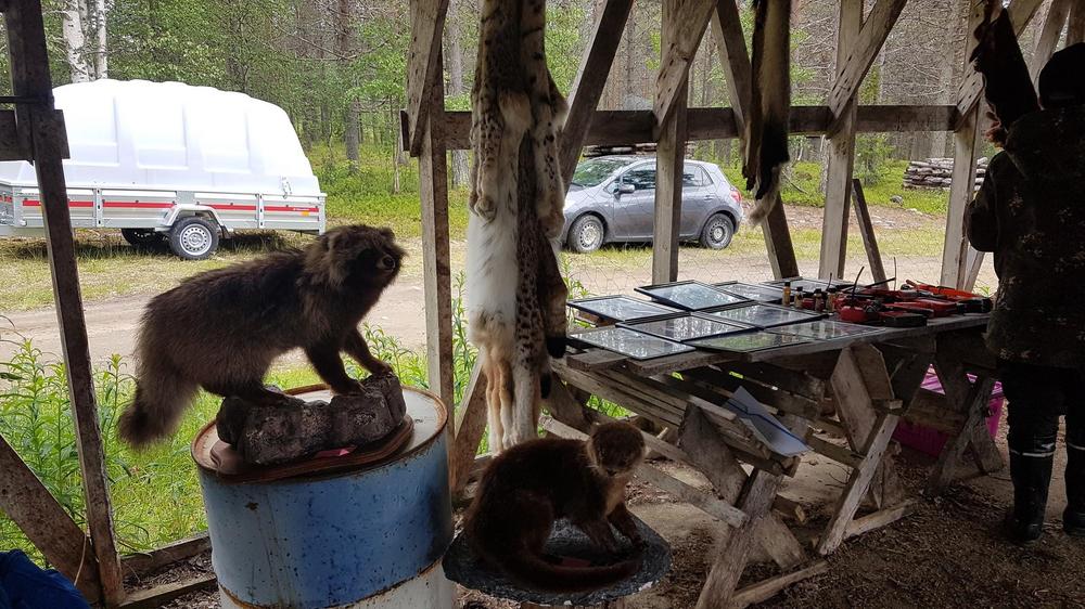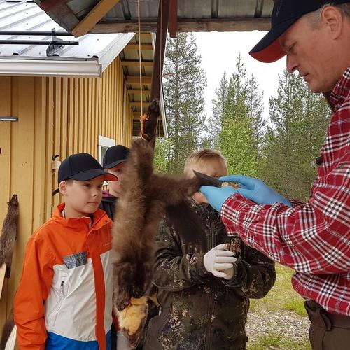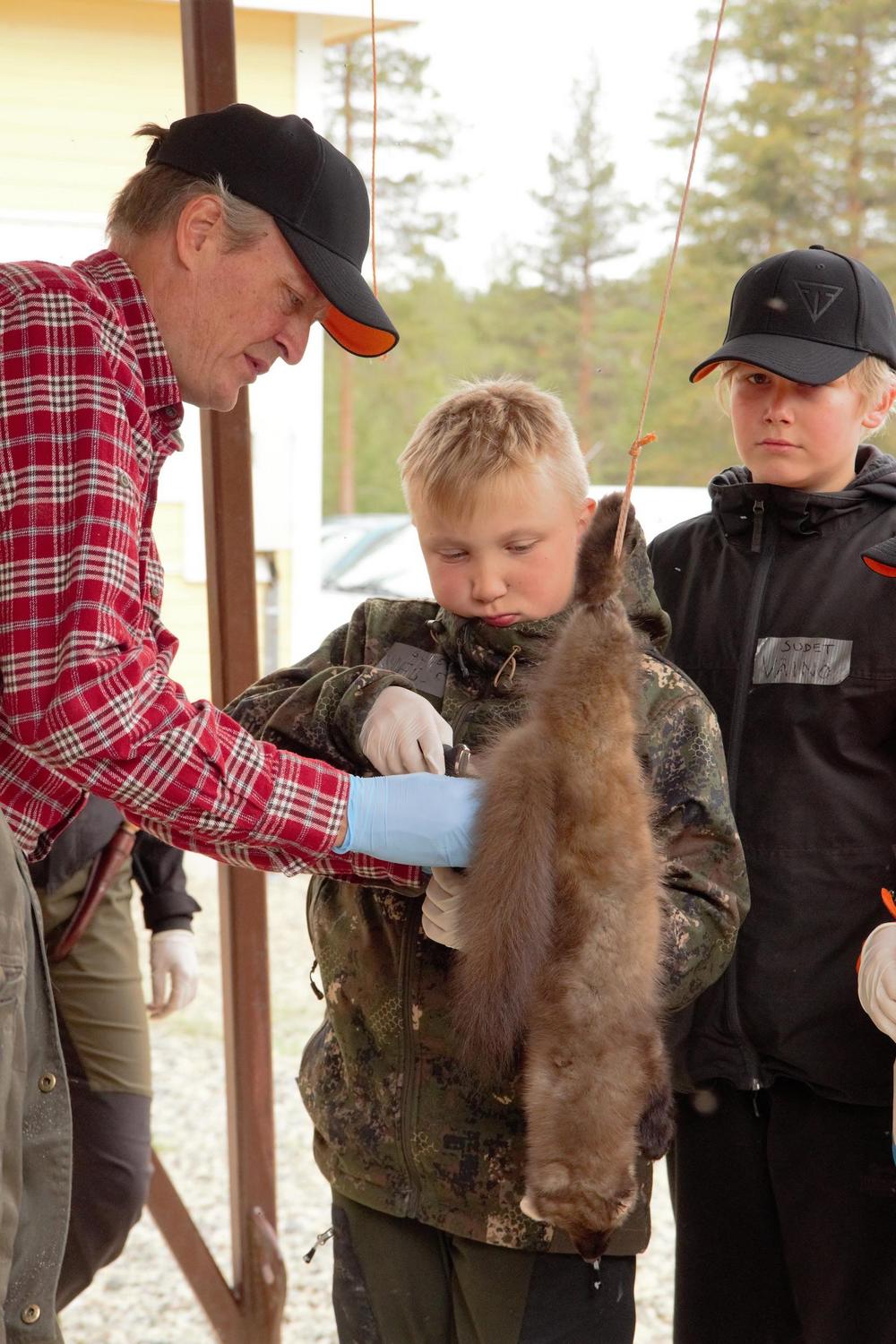 Rastin 4 teemana oli näädän nylkeminen ja nahan laittaminen taanaan. Ensin perehdyttiin näädänpyyntiin hetitappavilla raudoilla, mihin ja miten loukku ja raudat viritetään ja sitten kun saalis oli "saatu", alettiin opetella, miten näätä nahkotaan ja mitä sen jälkeen tehdään. Jokainen pääsi kokeilemaan, miten kultakurkun nahka omissa käsissä irtoaa ja sai varmasti hyödylliset nyljentäniksit käyttöön rastin asiantuntijoilta Juha Kankaalta ja Asko Aikiolta.