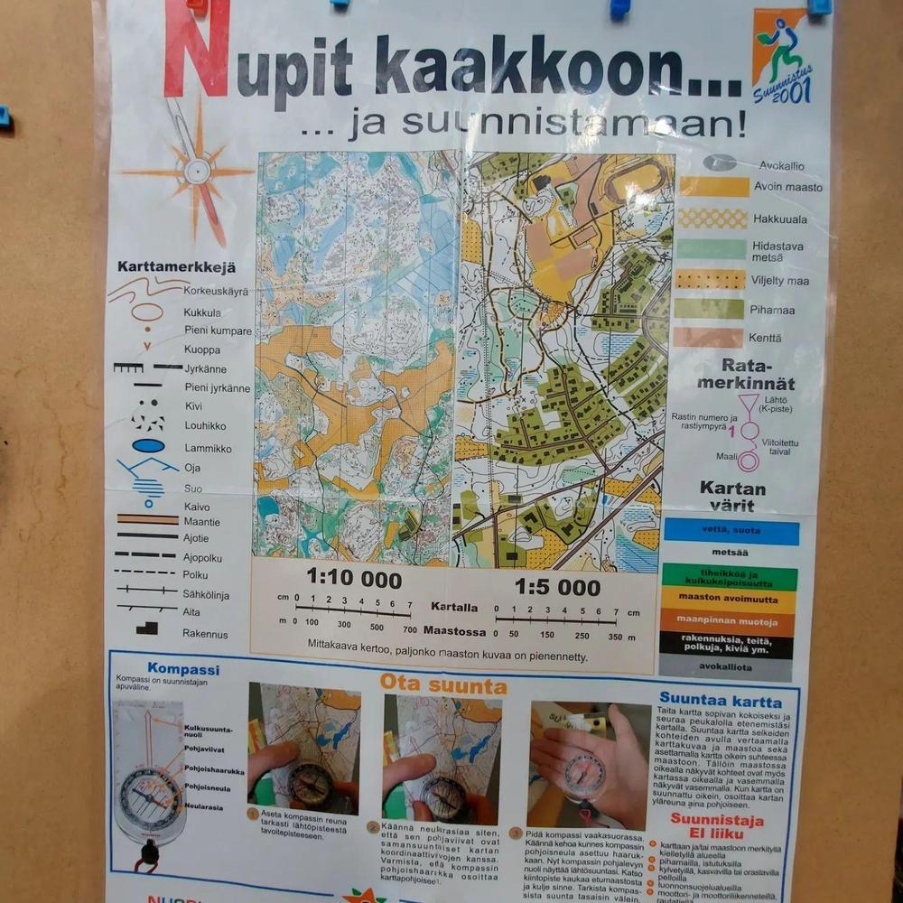 Suunnistusrastilla Soini Kallatsa apunaan Anna-Maija Kokkoniemi perehdytti leiriläisiä suunnistuksen perusteisiin. Rastilla opittiin mm. karttamerkkejä ja kompassin käyttöä, mitä tehdään, kun eksytään ja miten maamerkkejä kannattaa huomioida luonnossa kulkiessa. Leiriläiset pääsivät myös itse suunnistamaan Riipivuoman reunan metsään tehdyn kuuden rastin suunnistusradan joko pareittain tai yksin. Hienosti löytyivät rastit maastosta ja suunnistajatkin takaisin alkupisteeseen.