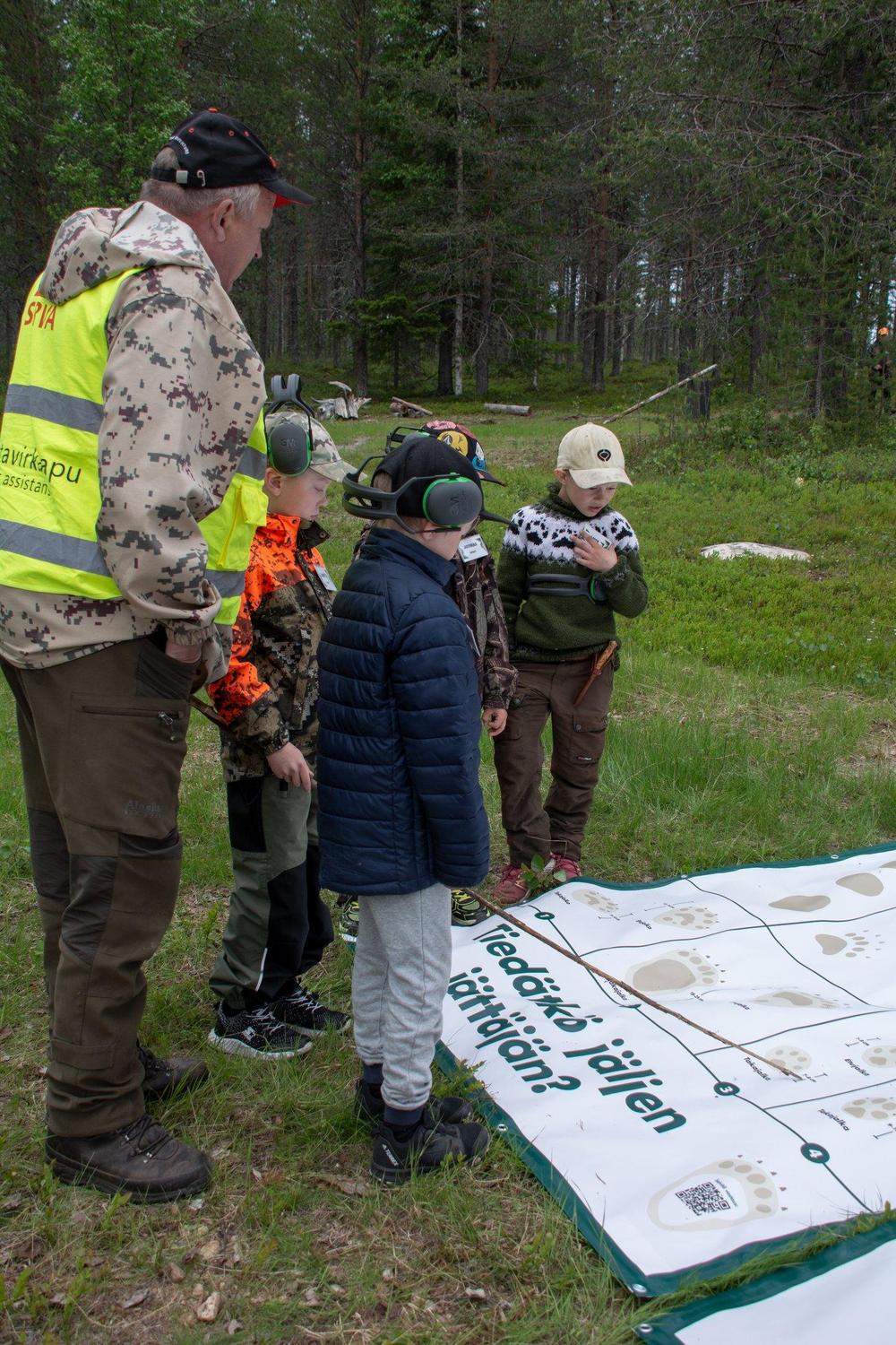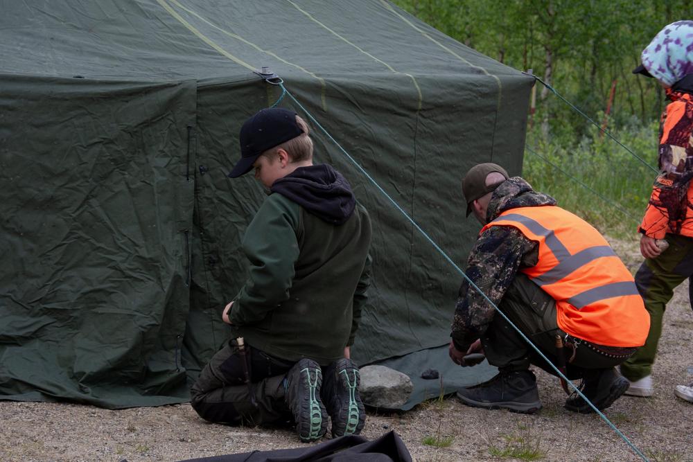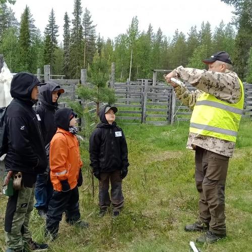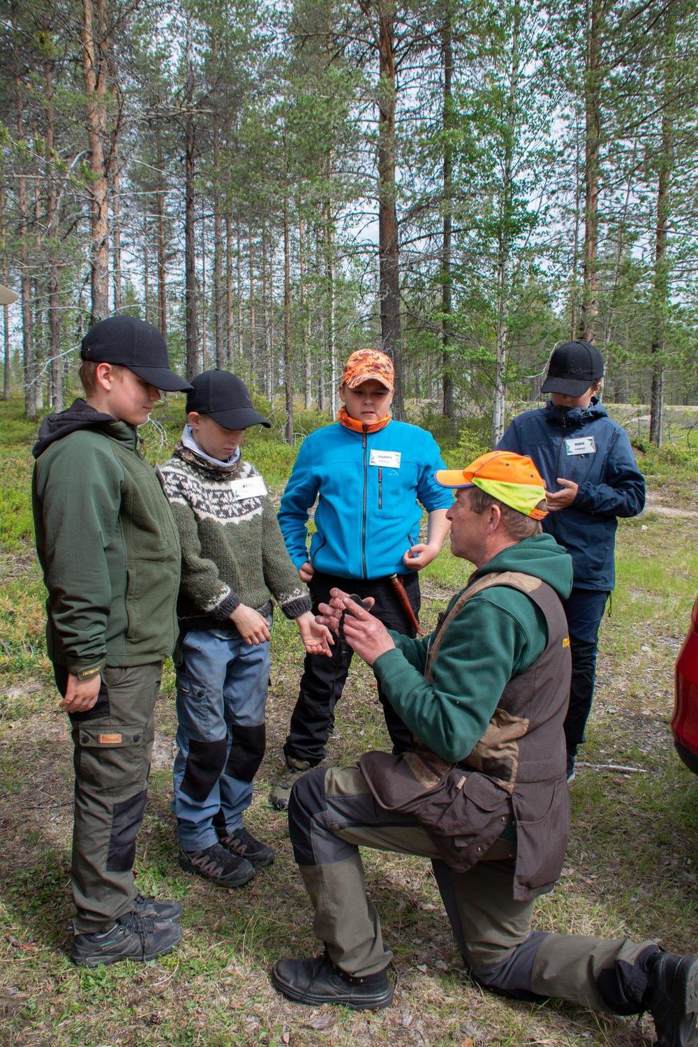 Leirin päätöspäivän ohjelmassa oli aamupalan jälkeen ensin telttojen purku, omien kamppeiden pakkaaminen ja leiripaikan siistiminen. Sitten vuorossa oli Sodankylän RHY:n toiminnanjohtaja Viljo Pesosen kertomana tietoisku riistanhoitoyhdistyksen toiminnasta ja metsästäjätutkinnosta.