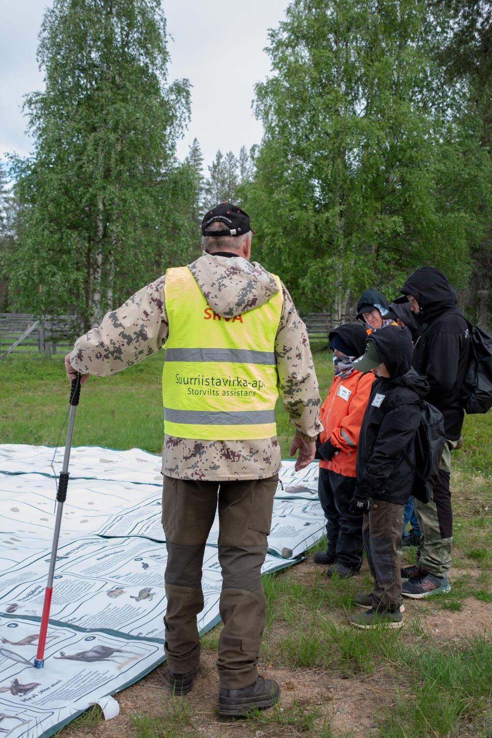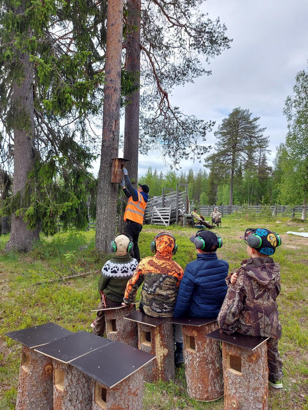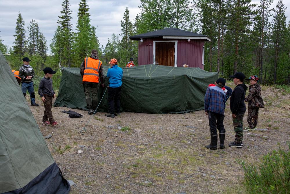 Leirin päätöspäivän ohjelmassa oli aamupalan jälkeen ensin telttojen purku, omien kamppeiden pakkaaminen ja leiripaikan siistiminen. Sitten vuorossa oli Sodankylän RHY:n toiminnanjohtaja Viljo Pesosen kertomana tietoisku riistanhoitoyhdistyksen toiminnasta ja metsästäjätutkinnosta.