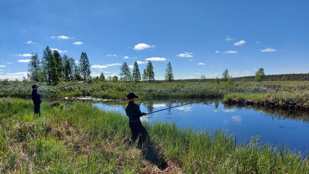 Kalastusrastilla koettiin Eino Junttilan opastamana edellisenä päivänä pyyntiin laitetut katiskat ja ongittiin Suomen Vapaa-ajankalastajien toimittamilla mato-ongilla Riipijoesta särkiä ja ahvenia. Pienryhmät Sudet, Ahmat, Karhut, Ketut ja Ilvekset kilpailivat kiivaasti keskenään suurimmasta kalansaaliista, voiton vei muutamalla kalalla Ilvesten joukkue. Kaikki leiriläiset saivat käyttämänsä onkivavat siimoineen koukkuineen omaksi, kalakisan voittajat saivat lisäksi palkinnoksi Meppsin lippauistimet.