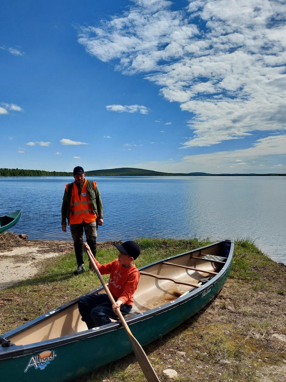 Lauantaiaamuun heräiltiin teltoista puoli kahdeksan aikoihin ja aamupalan jälkeen saatiin päivä mukavasti käyntiin, kun leirille vierailemaan tuli Riekkokummun kennelistä Heikki Aikio lyhytkarvaisine saksanseisojineen. Koiria ihasteltiin Tievatuvan pihamaalla ja metsikossa puoli kymmeneen asti, jolloin pyörähtivät käyntiin toisen leiripäivän rastit: kalastus, suunnistus, kanoottimelonta, näätärasti ja tietovisa.