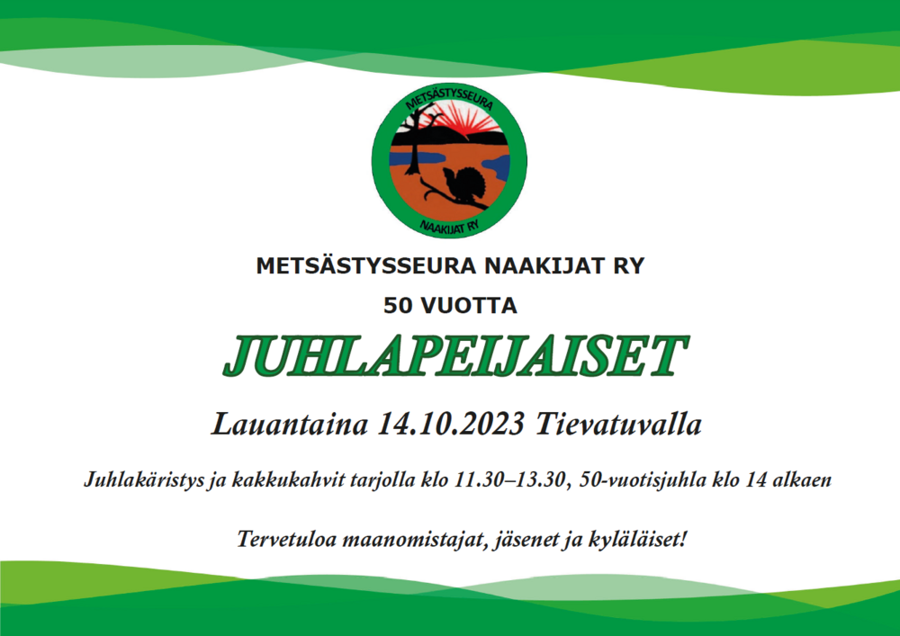 Metsästysseura Naakijat ry:n 50-vuotisjuhlapeijaiset Tievatuvalla 14.10.2023.
